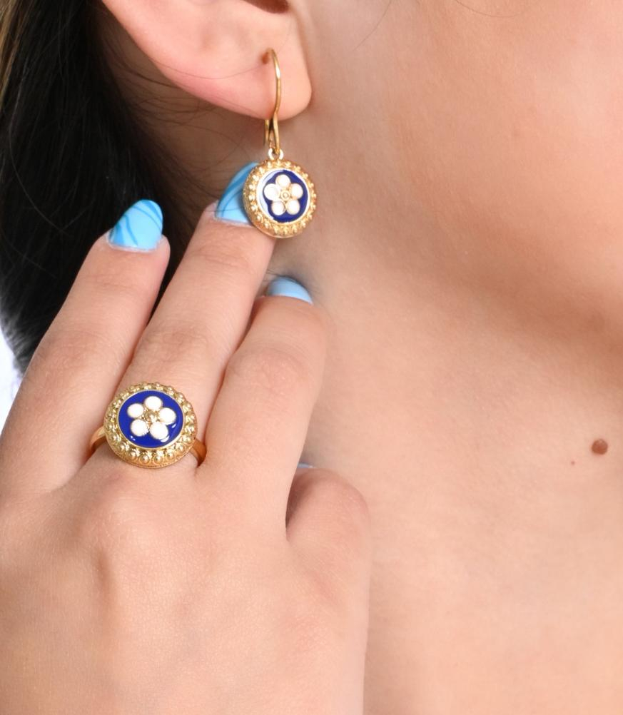 .Anel caramujo em aço inoxidavel cm banho de ouro inspirado nos Azulejo decorativos e arquitetónico com mais de 500 anos que marca a estética e o imaginário português.