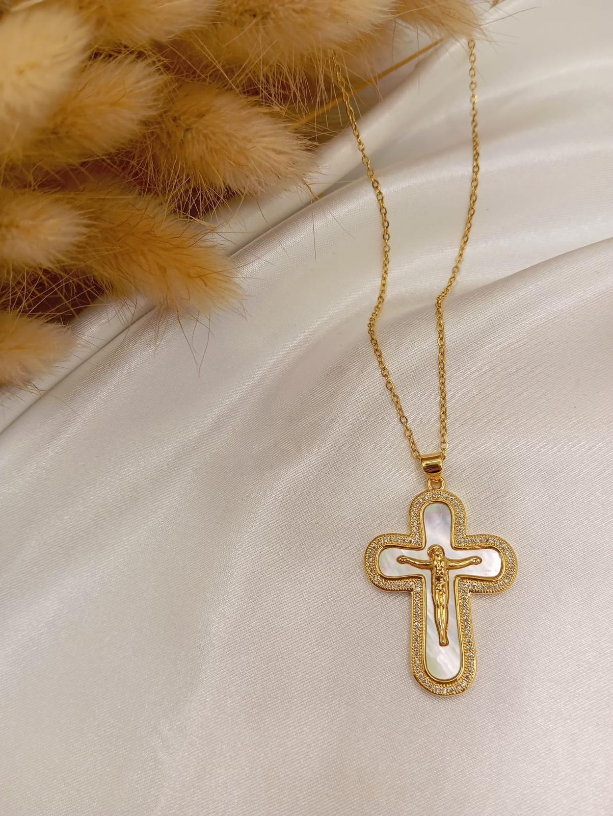 Colar de 50cm com extensor de 5cm e pendente cruz com uma imagem de jesus. Para que possa expressar a sua fé e espiritualidade através da moda e acessórios. Você pode combinar os acessórios religiosos com um mix de outros colares, anéis e brincos. Usá-los no dia a dia ou em ocasiões luxuosas